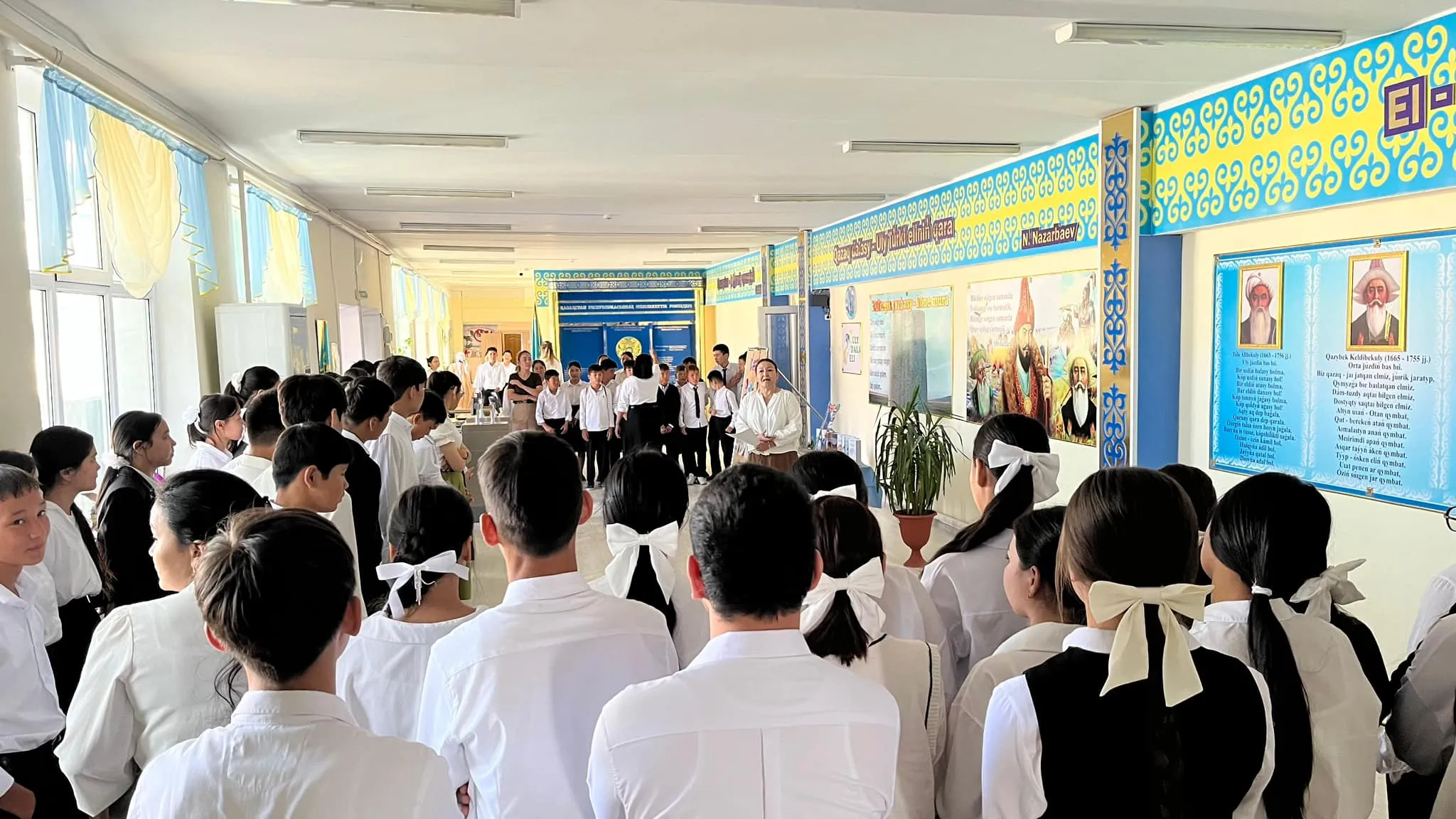 2024-2025 оқу жылының алғашқы қоңырау соғу рәсімін 1-сынып білім алушылары Қуанбекқызы Айпара пен Әдебиет Иманәлі соғып, 11-сынып білім алушылары кішкентай бүлдіршіндерге жырдан жүрек жарды тілектерін арнады.Қолдарынан жетектеп , болашаққа нық сенімде болуға бағыттап, қошемет шеруін жасады. Күміс қоңырау үнімен жалғасқан салтанатты шара , 1-сынып білім алушыларының өз ұстаздарымен алғашқы сабақ барысын өткізуімен қорытындыланды.